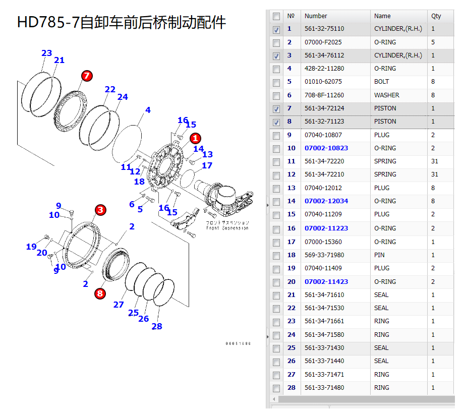 HD785-7自卸车前后桥561-32-75110,561-34-76112制动缸体561-37-34-72124,561-32-71123活塞